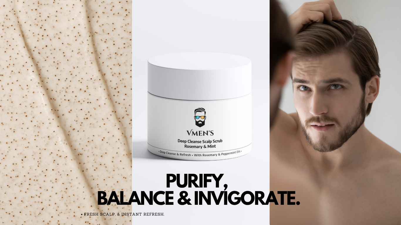 Echte Männer wissen, dass Pflege nicht nur das Aussehen betrifft – es geht darum, wie man sich fühlt. Unser Deep Cleanse Scalp Scrub ist mehr als nur eine Spülung; es setzt neu an. Ob es sich um Ablagerungen nach dem Training oder tägliche Rückstände handelt, spüren Sie die Kraft echter Kopfhautpflege ab der ersten Anwendung.